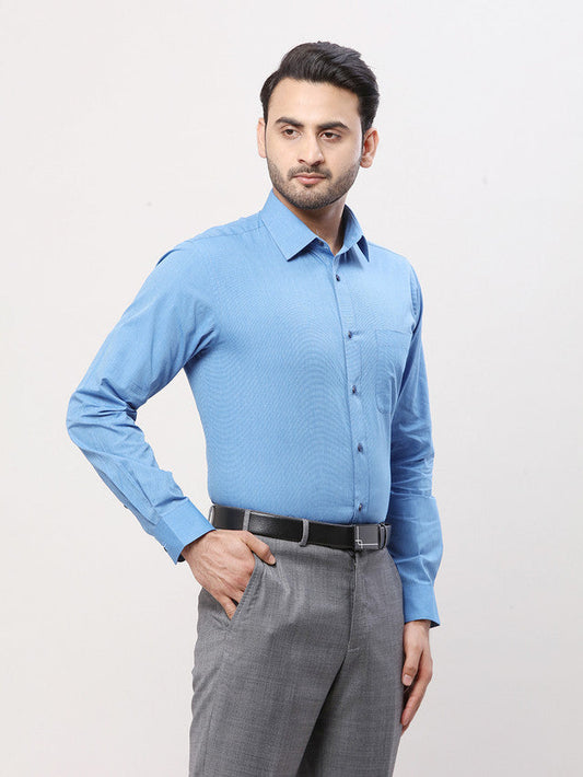 Raymond Men Blue Solid Slim Fit Cotton Formal Shirt