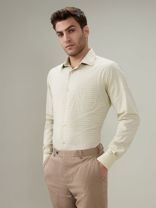 Raymond Men Brown Checks Contemporary Fit Cotton Full Sleeve Formal Shirt
