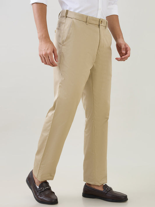Colorplus Men Khaki Solid Piece Dyed Comfort Fit Cotton Trouser