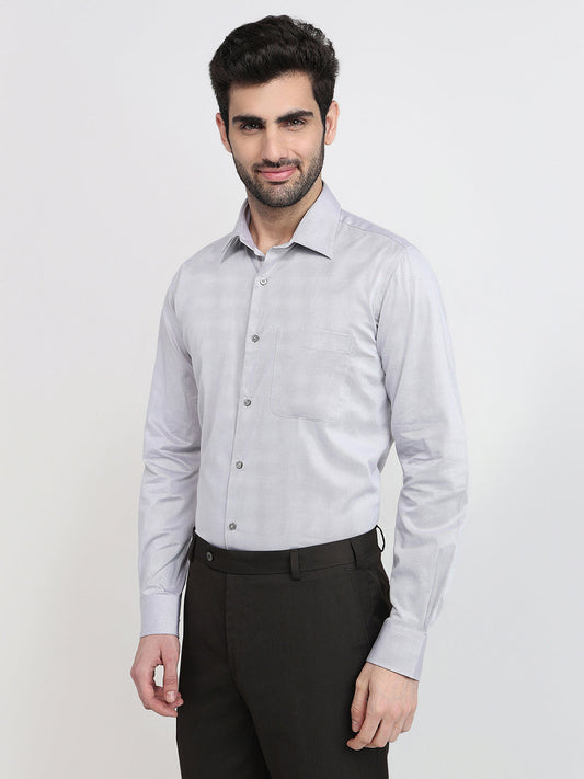 Raymond Men Grey Stripe Contemporary Fit Bamboo Blend Full Sleeve Formal Shirt