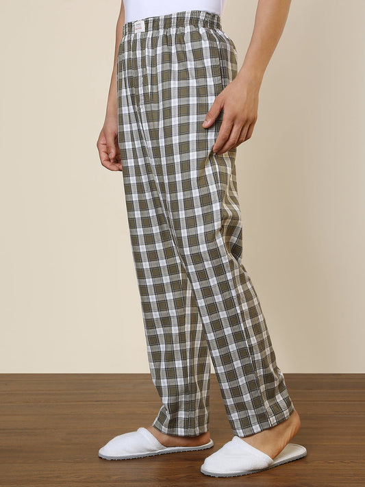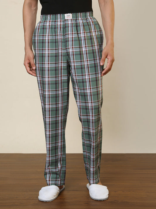 Sleepz Men Green Checks Regular Fit Cotton Pyjama