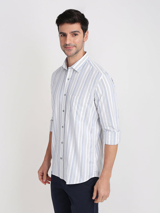 Colorplus Men White Stripe Regular Fit Cotton Blend Full Sleeve Casual Shirt