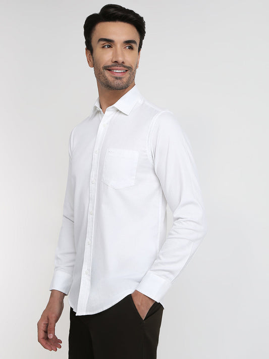Colorplus Men White Solid Slim Fit Cotton Full Sleeve Casual Shirt