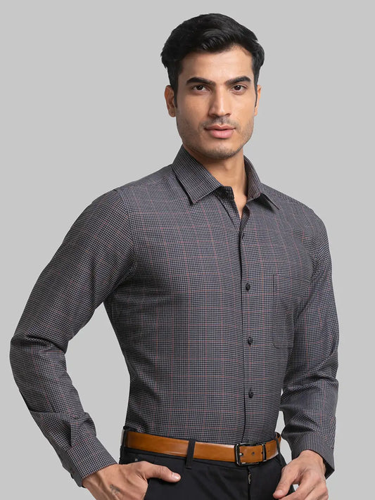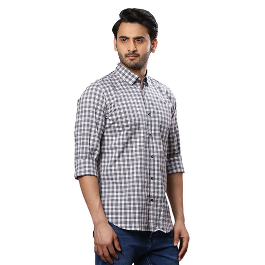 Men Grey Contemporary Fit Checks Cotton Regular Collar Shirts