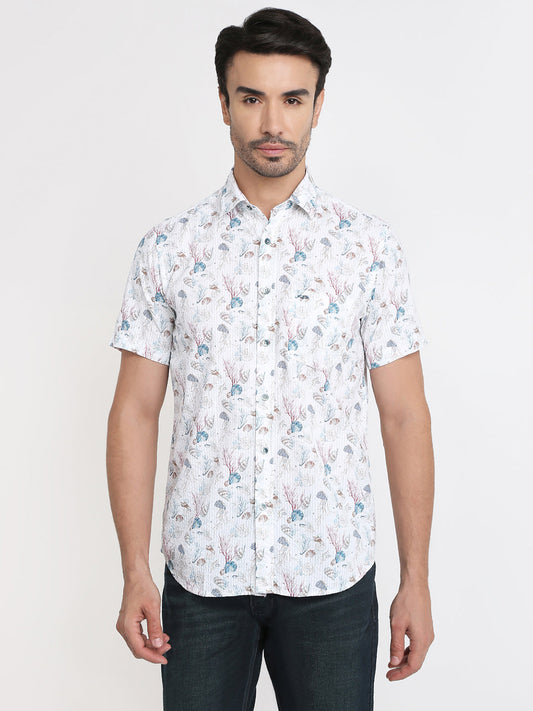 Colorplus Men Blue Printed Regular Fit Cotton Half Sleeve Casual Shirt
