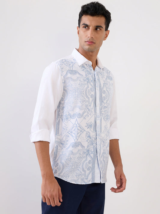 Colorplus Men Blue Printed Slim Fit Cotton Blend Full Sleeve Casual Shirt