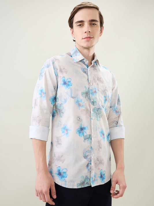 Colorplus Men Blue Printed Slim Fit Cotton Full Sleeve Casual Shirt