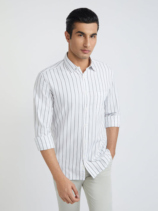 Men White Slim Fit Stripe Cotton Full Sleeve Shirts