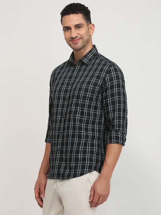 Parx Men Black Checks Slim Fit Cotton Casual Shirt