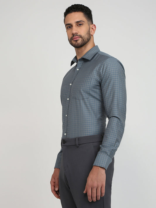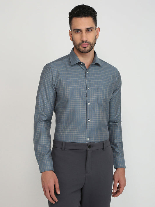 Park Avenue Men Grey Checks Slim Fit Cotton Blend Formal Shirt