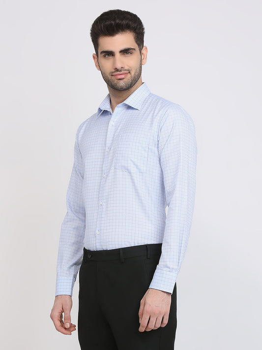 Park Avenue Men Blue Checks Slim Fit Cotton Blend Formal Shirt