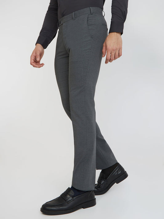 Raymond Men Grey Self Design Contemporary Fit Trouser