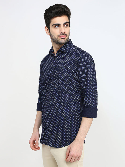 Park Avenue Men Blue Printed Slim Fit Cotton Full Sleeve Casual Shirt