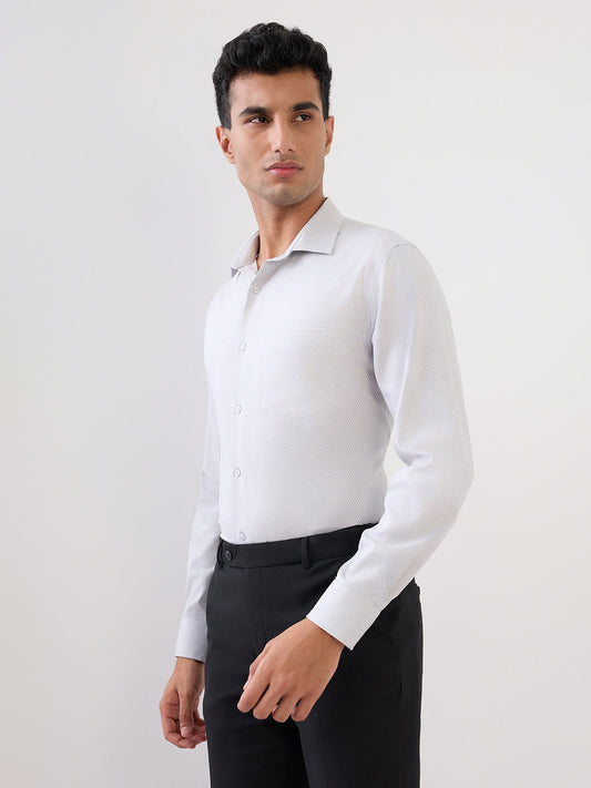 Park Avenue Men Grey Structure Regular Fit Cotton Full Sleeve Formal Shirt