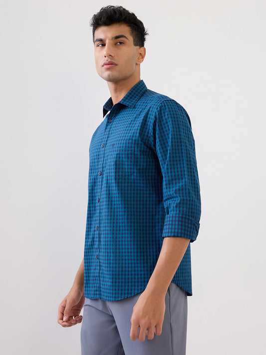 Raymond Men Blue Checks Slim Fit Cotton Full Sleeve Casual Shirt