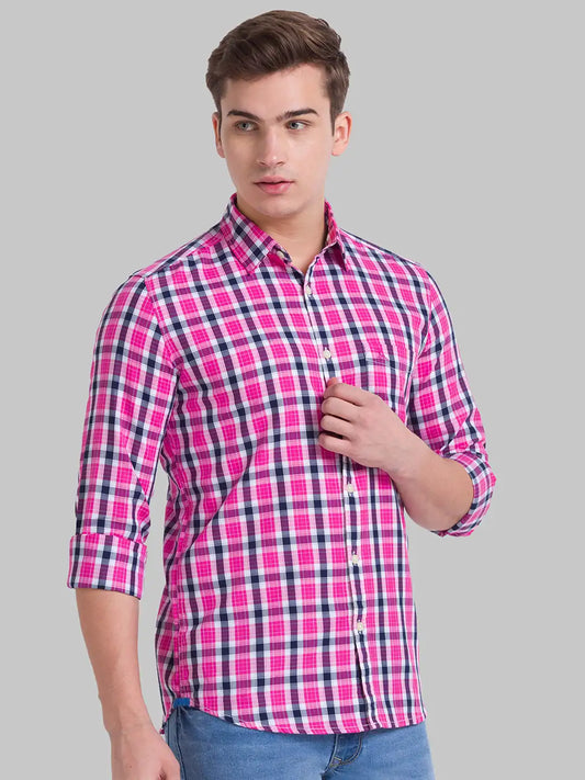 • Parx Men Pink Checks Slim Fit Cotton Casual Shirt