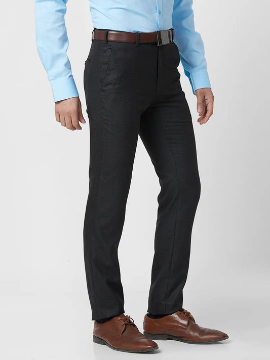 Park Avenue Black Structure Regular Fit Polyester Blend Trouser
