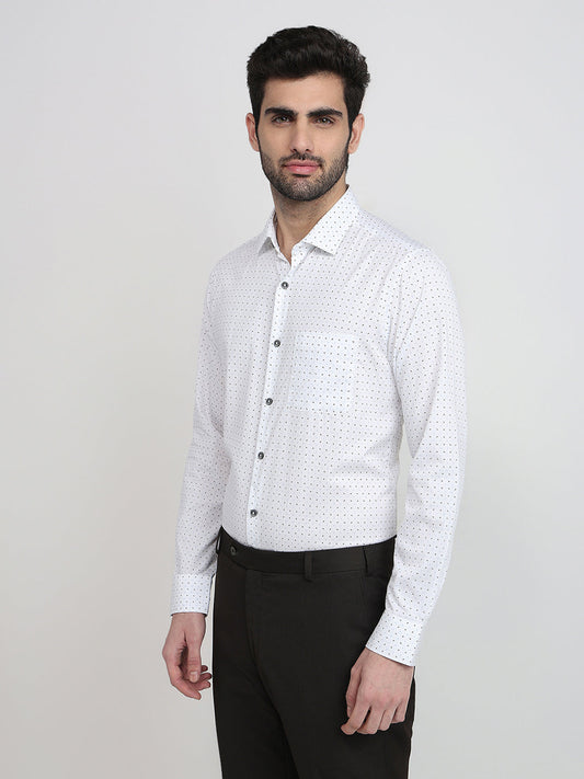Raymond Men White Printed Slim Fit Cotton Full Sleeve Cut Away Collar Casual Shirt