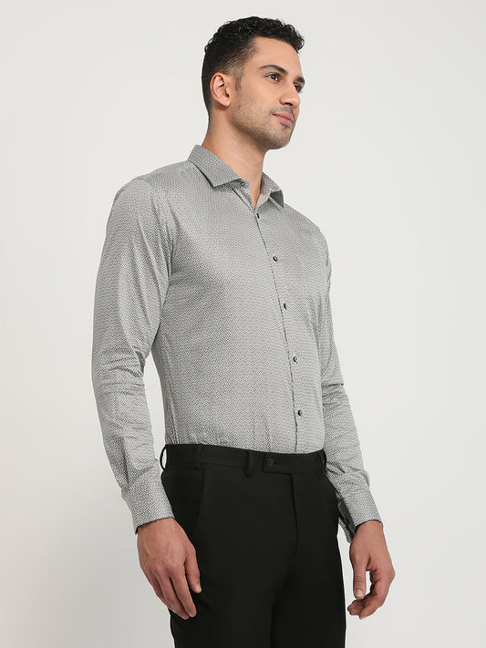 Park Avenue Men White Printed Slim Fit Cotton Formal Shirt