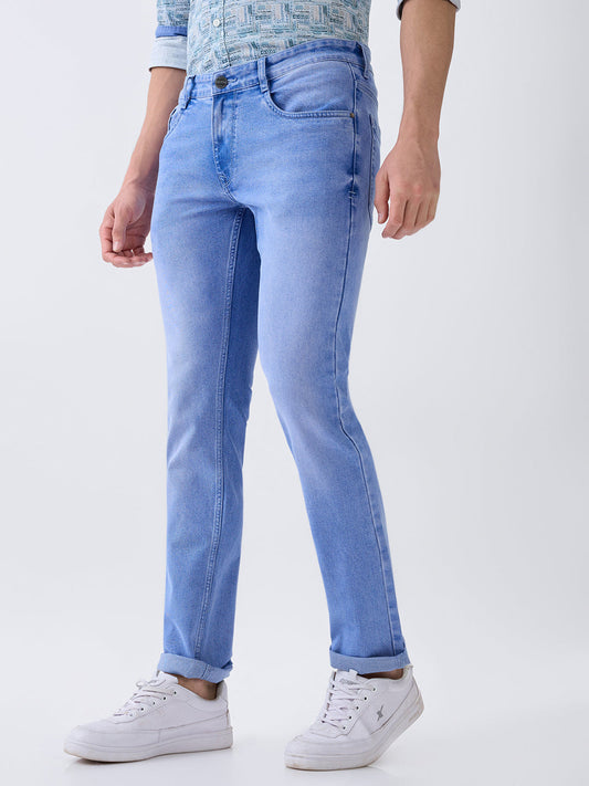 Parx Men Blue Twill Low Rise Tapered Fit Cotton Blend Jeans