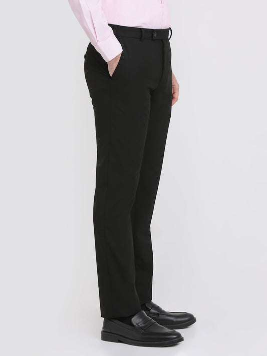 Park Avenue Men Black Solid Slim Fit Polyester Blend Trouser