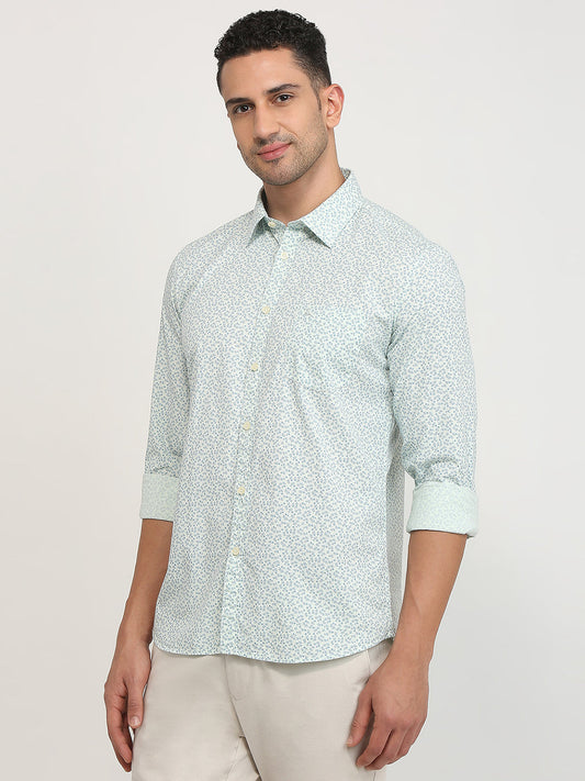 Parx Men Green Printed Slim Fit Cotton Casual Shirt