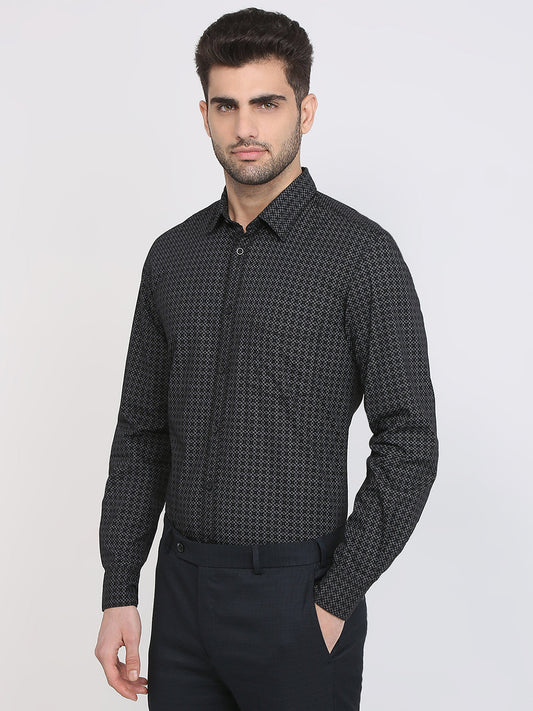 Parx Men Black Printed Slim Fit Cotton Casual Shirt