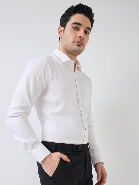Park Avenue Men White Structure Slim Fit Cotton Blend Formal Shirt