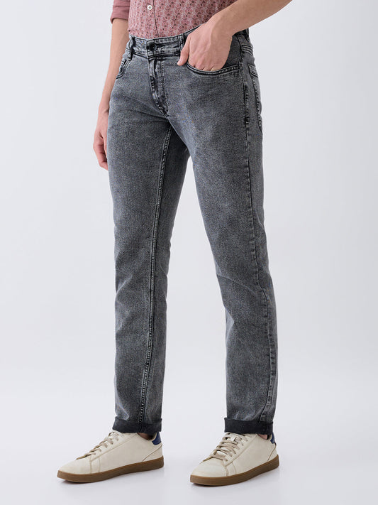 Parx Men Black Twill Low Rise Tapered Fit Cotton Blend Jeans