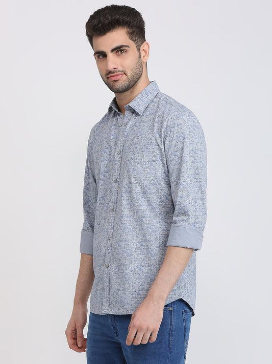 Parx Men Grey Printed Slim Fit Cotton Casual Shirt