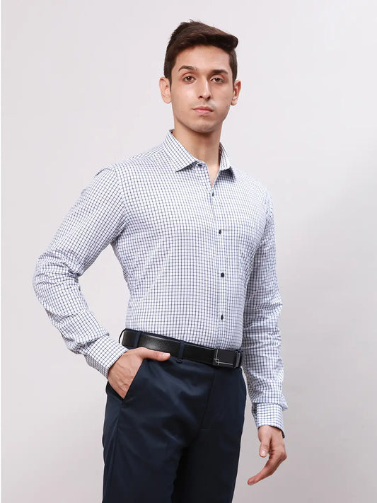 Park Avenue Men Blue Slim Fit Checkered Cotton Full Sleeve Cut Away Shirt