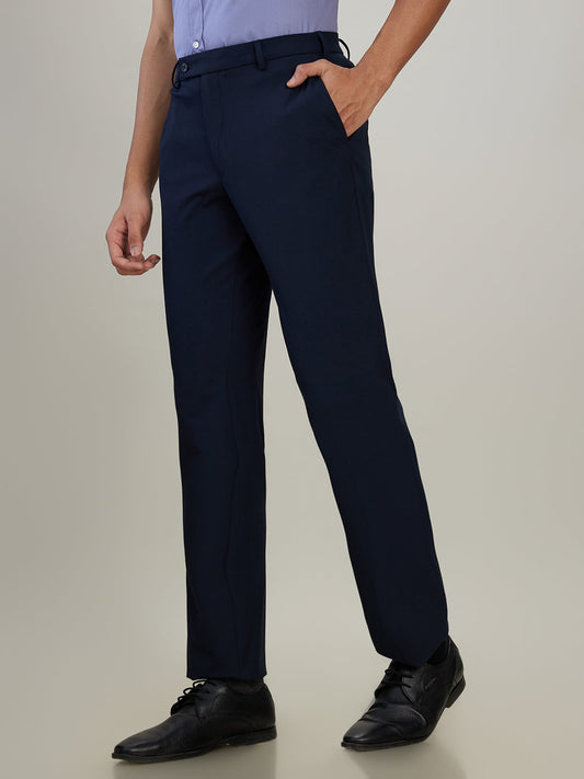 Park Avenue Men Blue Solid Slim Fit Polyester Blend Trouser