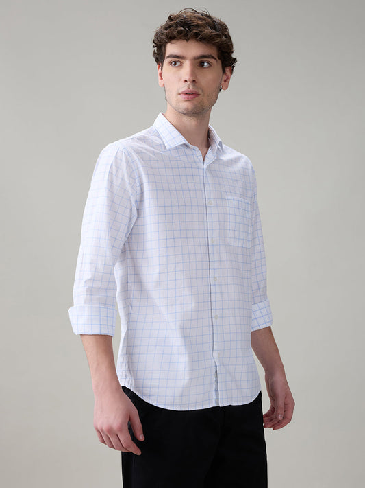 Raymond Men Blue Checks Slim Fit Cotton Full Sleeve Casual Shirt