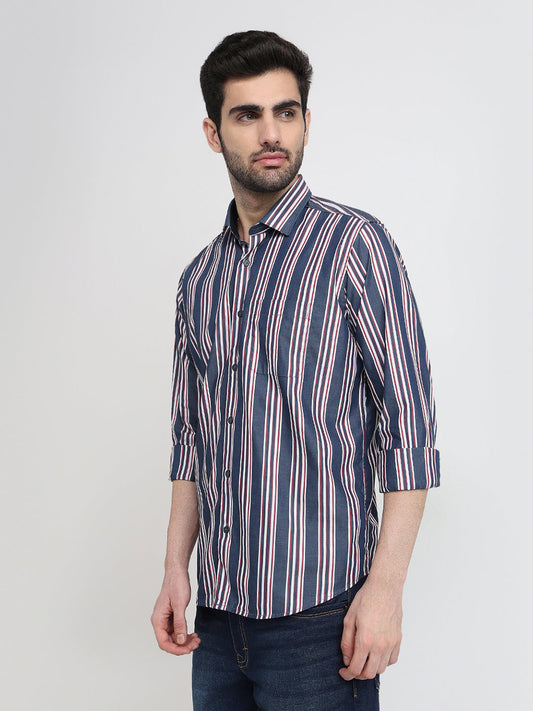 Raymond Men Blue Stripe Regular Fit Cotton Full Sleeve Casual Shirt