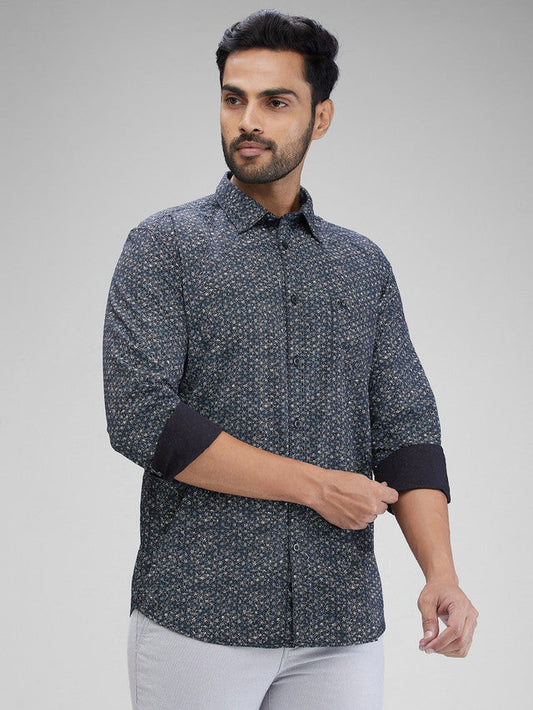 Parx Men Blue Printed Slim Fit Cotton Casual Shirt