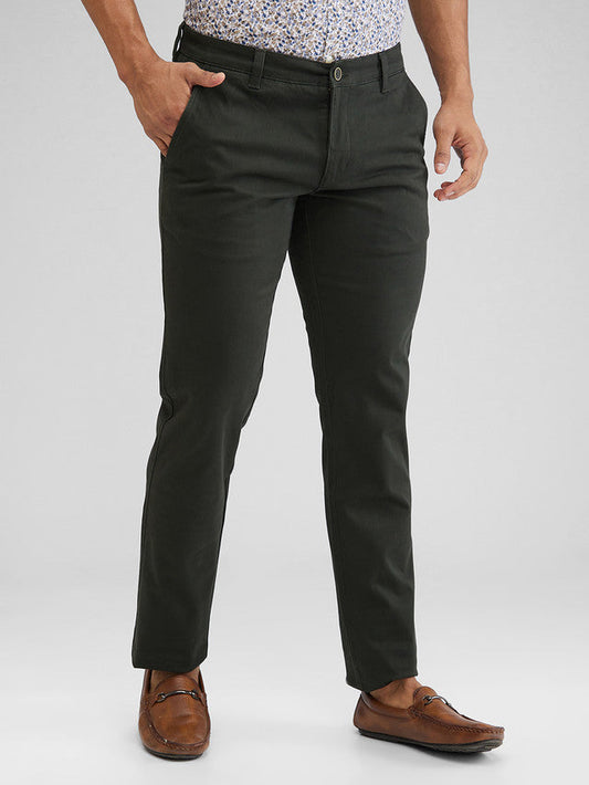 Parx Green Solid Low Rise Tapered Fit Cotton Blend Trouser