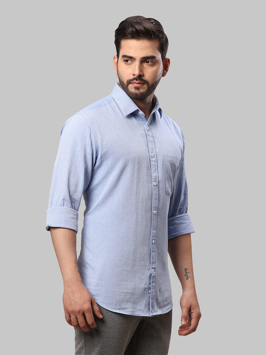Raymond Blue Structure Slim Fit Full Sleeve Cotton Shirt