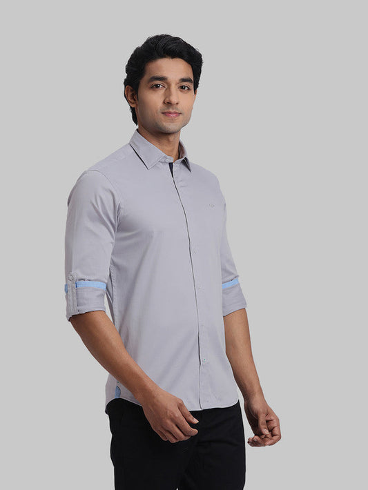 Colorplus Men Grey Plain Regular Fit Cotton Blend Casual Shirt