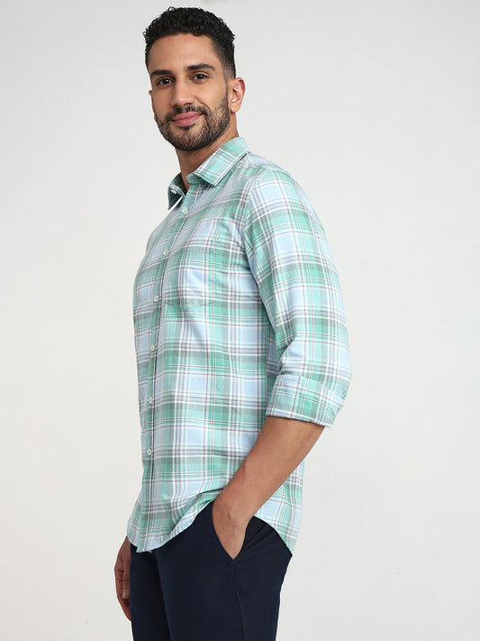 Parx Men Green Checks Slim Fit Cotton Casual Shirt