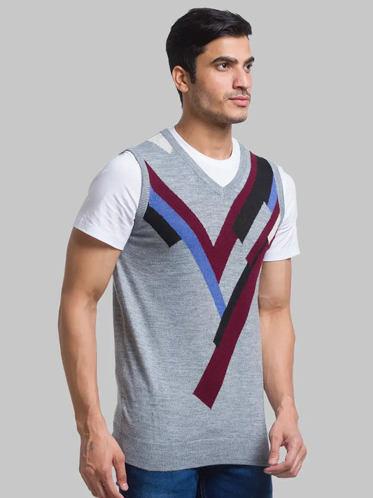 Men Grey Intarsia Acrylic Blend Sleeveless Sweaters