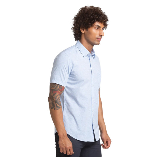 Parx Men Blue Slim Fit Printed Cotton Half Sleeve Shirts
