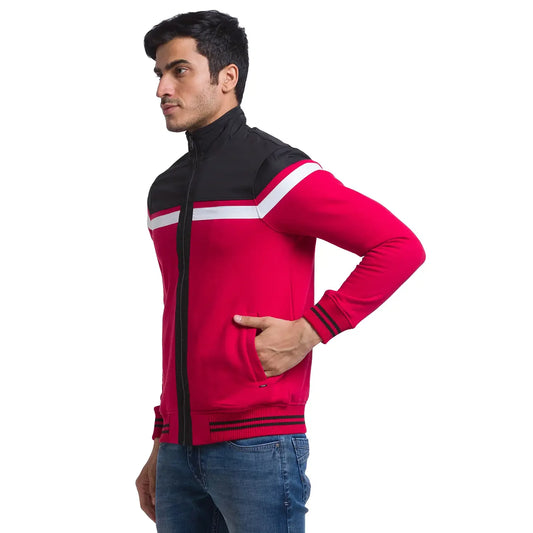 Men Red Regular Fit Cut & Sew Cotton Polyester Blend Sweatshirts