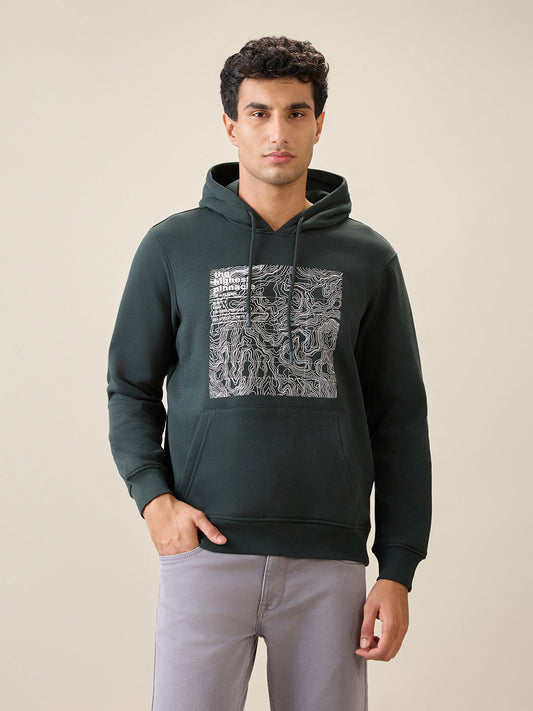 Parx Men Green Graphic Regular Fit Cotton Blend Full Sleeve Sweatshirt