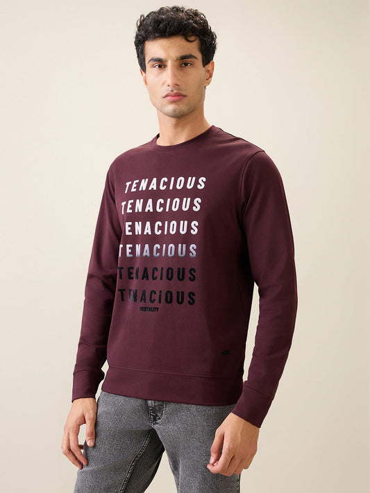 Parx Men Purple Graphic Regular Fit Cotton Blend Full Sleeve Round Neck Collar Sweatshirt