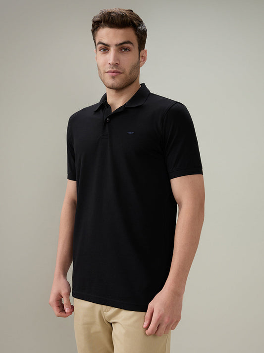 Park Avenue Men Black Solid Slim Fit Cotton Blend Half Sleeve T-Shirt