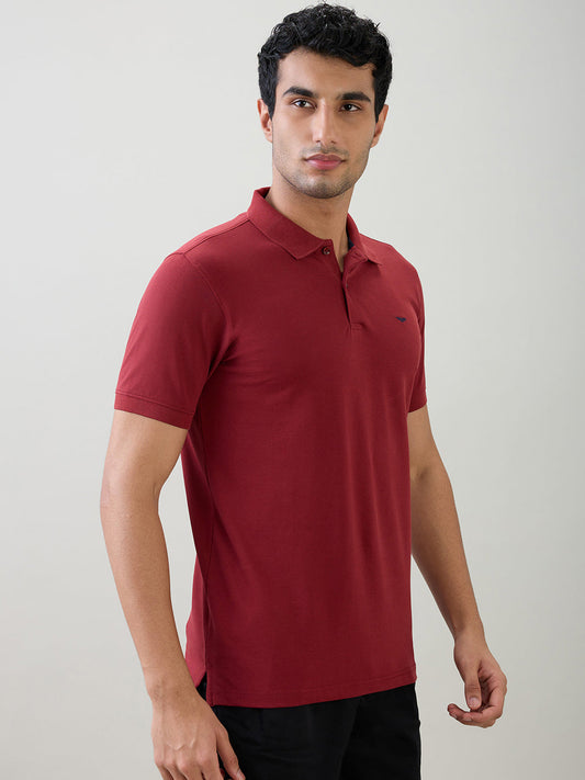 Park Avenue Men Red Solid Slim Fit Cotton Blend Half Sleeve T-Shirt