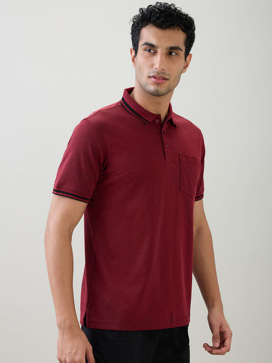 Raymond Men Maroon Two Tone Regular Fit Polyester Blend Half Sleeve T-Shirt