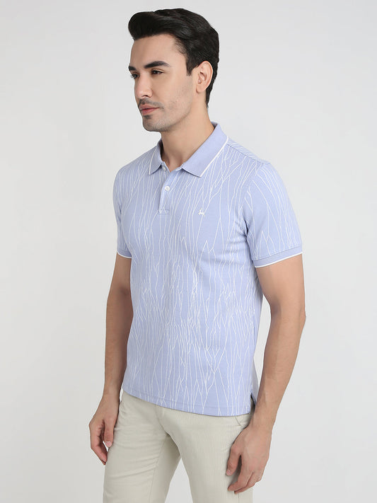 Raymond Men Blue Jacquard Regular Fit Cotton Half Sleeve T-Shirt