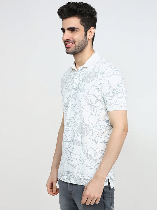 Parx Men White Printed Regular Fit Rayon Blend Half Sleeve T-Shirt