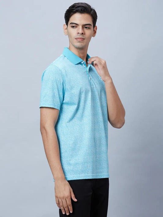 Park Avenue Men Blue Printed Slim Fit Half Sleeve Polo Neck T-Shirt